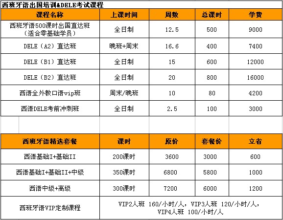 西語特價班,原價1800,現價1400,再送300抵用券,出國課程贈送2000留學基金,套餐立減300