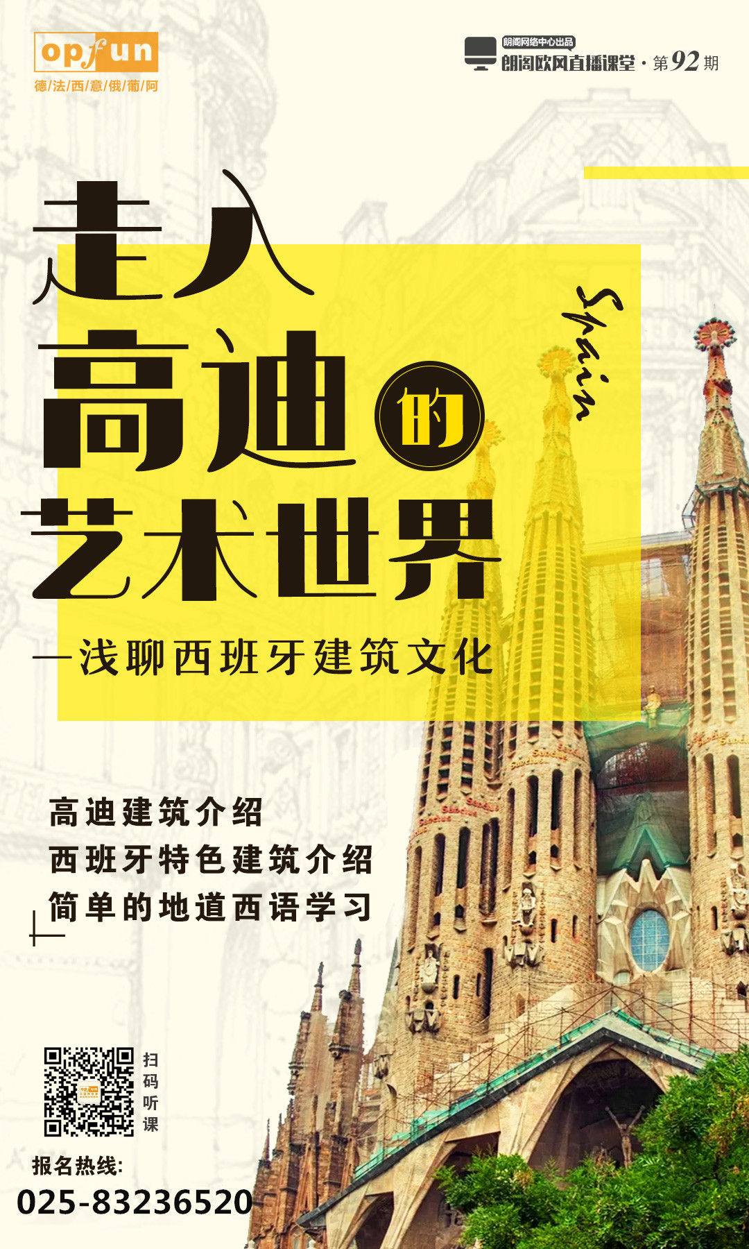 講座主題:走入高迪的藝術(shù)世界—淺聊西班牙建筑文化 講座形式:騰訊課堂錄播課程