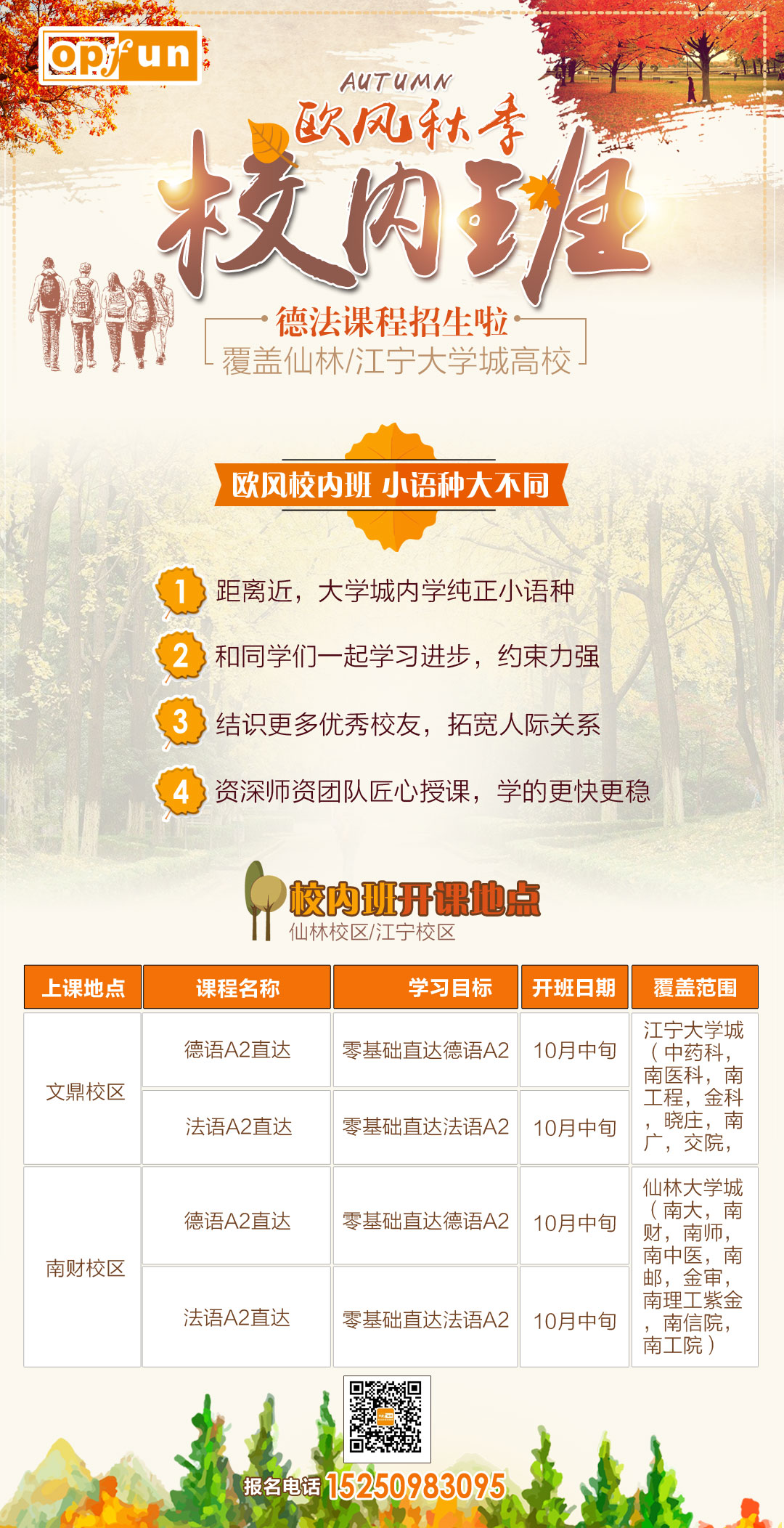 南京歐風小語種秋季校內班開始招生啦~ 報名熱線:025-83236520