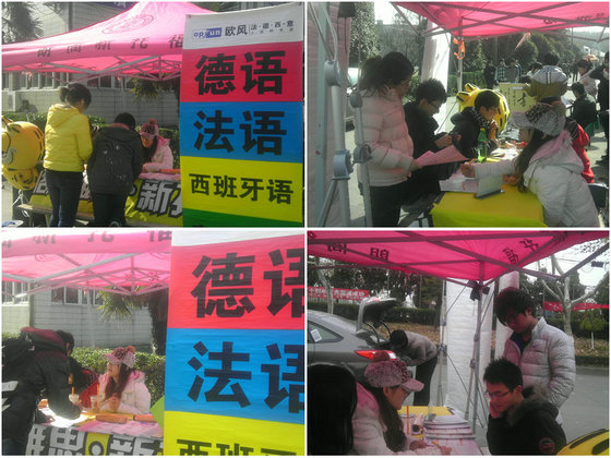 12月6日南京歐風小語種在南京信息工程大學本部人流量大的中苑老食堂舉辦了一天的戶展活動。當天雖然天氣寒冷,但同學們咨詢熱情不減,一直咨詢到天黑。現場歐風顧問熱情接待,專業講解。 快來跟歐風小編一起看看當天的精彩圖片吧! 活動現場發單宣傳,同學們搶閱南京歐風的精彩課程單頁。