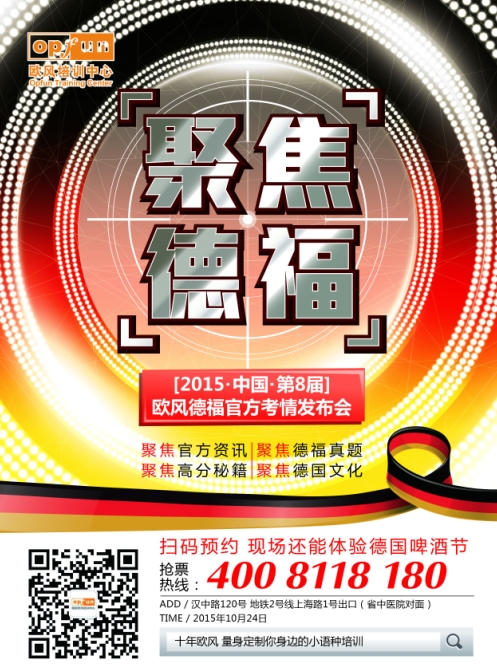 聚焦官方資訊 現(xiàn)場(chǎng)解析2015考情 聚焦德福真題 德語(yǔ)教師帶你一網(wǎng)打盡 聚焦秘籍 學(xué)霸幫你掌握重點(diǎn) 聚焦德國(guó)文化 親身體驗(yàn)德國(guó)啤酒節(jié)