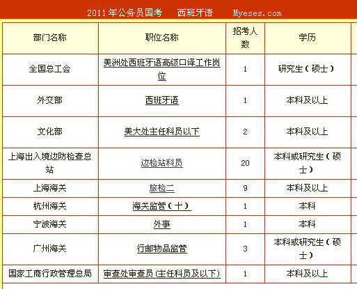 有的機構看著招人很多,但也只是看上去很美,名額通常是幾個語種共享的,說是共享,實為共搶;反正你知道上海海關招9個是指法西俄韓日總共要9個就不會發昏,以下是一部分這樣的招考職位: