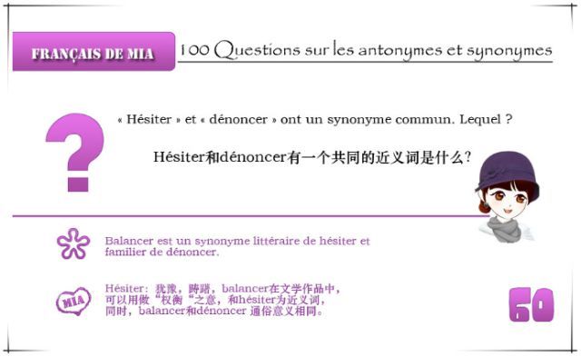 « Hésiter » et « dénoncer » ont un synonyme commun. Lequel ? Hésiter和dénoncer有一個(gè)共同的近義詞是什么?南京歐風(fēng)法語(yǔ)小編為你講解一下: Balancer est un synonyme littéraire de hésiter et familier de dénoncer. Hésiter :猶豫,躊躇,balancer在文學(xué)作品中,可以用作“權(quán)衡”之意,和hésiter為近義詞,同時(shí),balancer和dénoncer通俗意義相同。 (責(zé)任編輯:admin) |