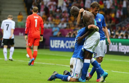 ![]() 北京時間6月29日凌晨02:45,2012歐洲杯半決賽,意大利在華沙國家體育場2-1淘汰德國,決賽將戰西班牙。巴洛特利梅開二度,卡薩諾和蒙托利沃分別助攻。比賽后時刻,德國隊獲得點球,厄齊爾點球破門。